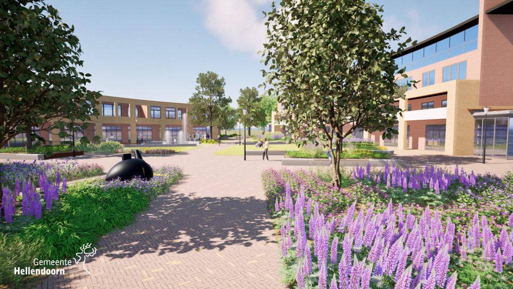 Bij het zorgcentrum, de kerk en de school aan de zuidzijde wordt het hekwerk weggehaald en een aantal bomen verwijderd. Zo ontstaat er een betere verbinding met het plein. Het bekende ‘Hart-kunstwerk’ keert terug bij het Kulturhus als een waterelement in een groen gebied.