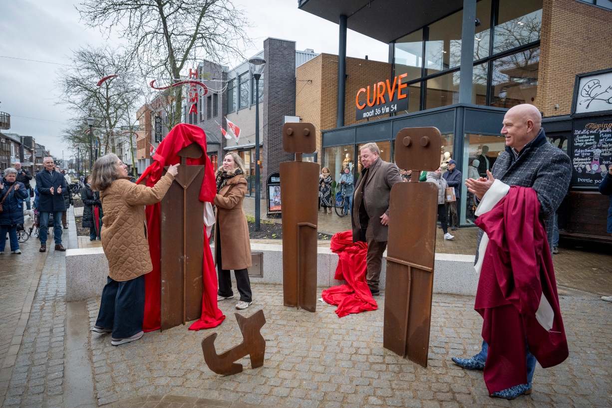 Op zaterdagmiddag 6 december stonden we samen op het Keizerserf, waar wethouders Egbert Nijenbanning en Annemarie Dubbink, gedeputeerde Erwin Hoogland en kunstenares Annejet van Stekelenburg het doek trokken van het nieuwe kunstwerk. Een prachtig en feestelijk moment waarmee het vernieuwde centrum officieel geopend is.