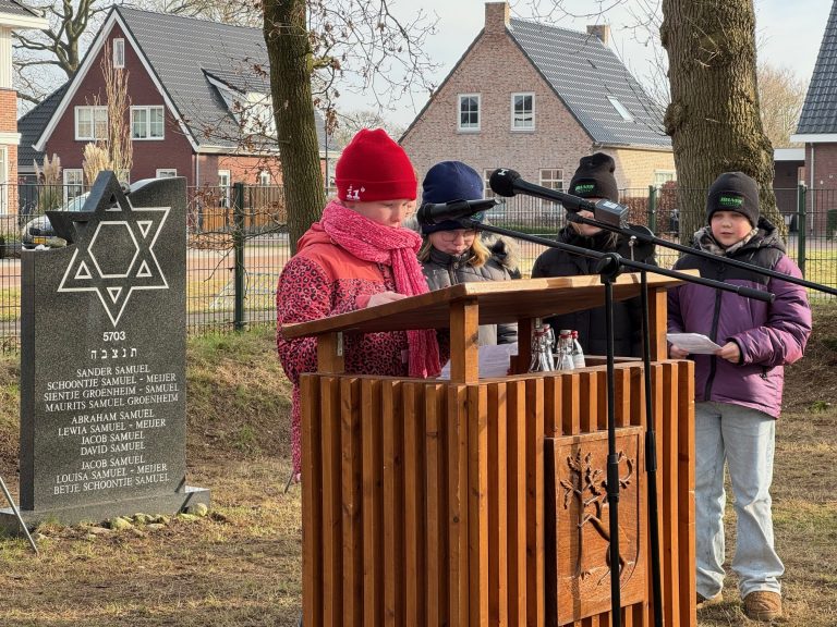 Samen lazen ze alle namen voor. Imre en Sanneke, leerlingen van basisschool De Marliaantjes, noemden één voor één de Joodse slachtoffers die tijdens de Holocaust in de gemeente Hellendoorn zijn omgekomen.