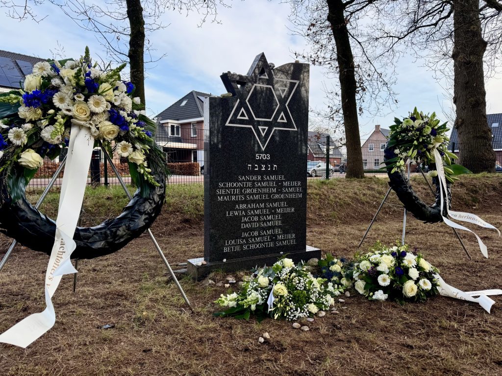 Dat deden zij op de Joodse begraafplaats aan de Ommerweg in Hellendoorn, waar dinsdagmiddag voor de derde keer de lokale Holocaustherdenking plaatsvond. De bijeenkomst viel samen met de Internationale Holocaust Herdenkingsdag, de dag waarop in 1945 concentratiekamp Auschwitz werd bevrijd.