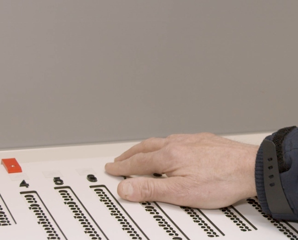Met een koptelefoon leest de stembox de partijen en kandidaten voor. Zo hoort u welk nummer bij welke kandidaat hoort.