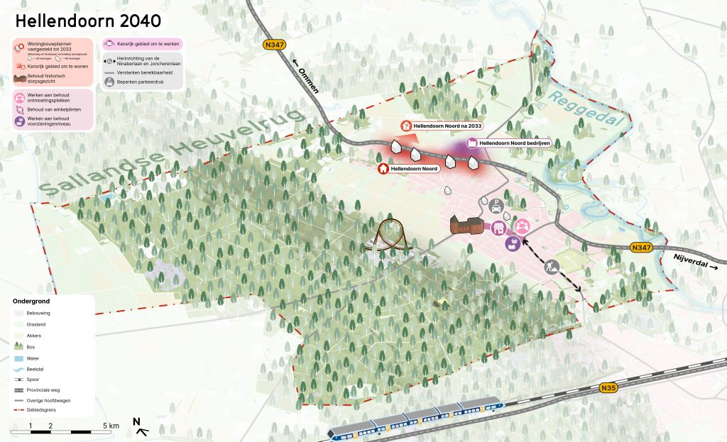 Je ziet hieronder een kaart die een richting geeft voor de ontwikkeling van Hellendoorn.